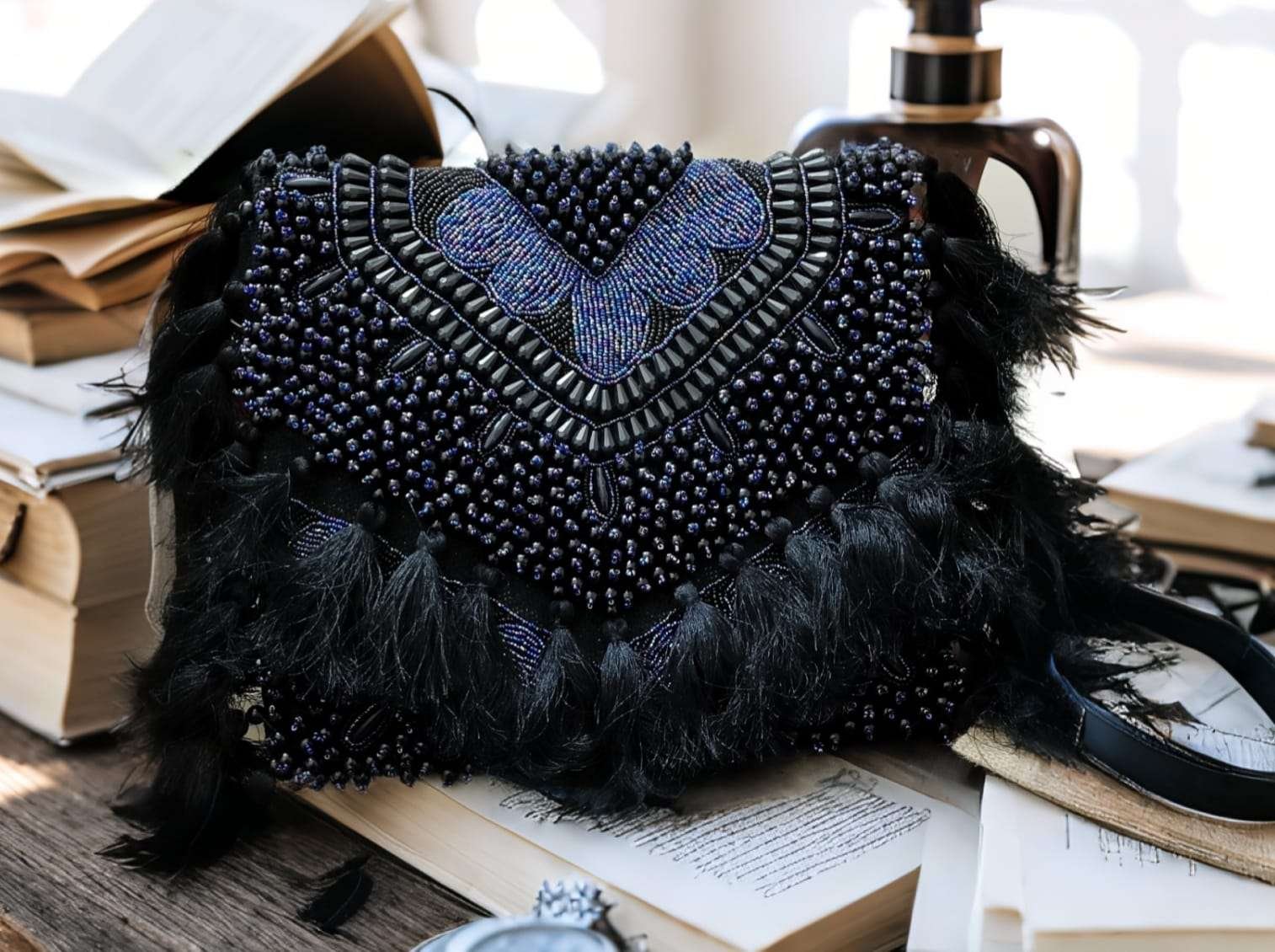 Midnight Blossom Fringe Bag