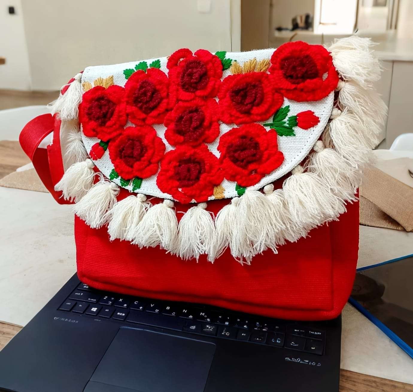 Midnight Blossom Fringe Bag
